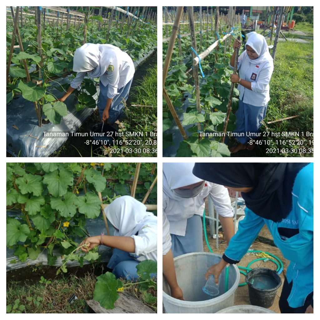 Kegiatan yang dilakukan oleh SMKN 1 BRANG ENE dalam budidaya tanaman melon, pemupukan merupakan hal mutlak yang harus dilakukan. Tujuan dari pemupukan ini adalah agar kebutuhan unsur hara tanaman terc