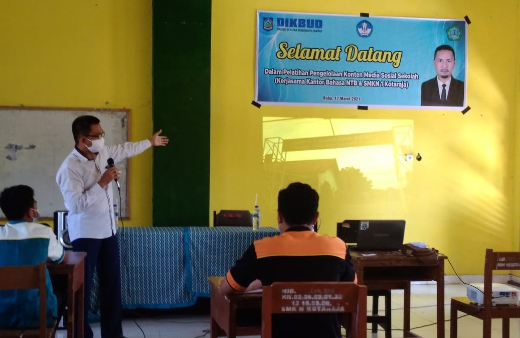 SMKN 1 Kotaraja mengadakan kegiatan Pelatihan Mengelola Konten Media Sosial pada hari Rabu 17 Maret 2021 dengan mengundang Bapak Hartanto yang merupakan Peneliti Ahli Pertama Kantor Bahasa NTB.