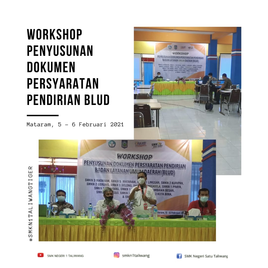 SMK NEGERI 1 TALIWANG bersama 14 SMK di Provinsi Nusa Tenggara Barat mengikuti Workshop Penyusunan Dokumen Persyaratan Pendirian Badan layanan Umum Daerah (BLUD) pada tanggal 5 s.d 6 Februari 2021 di