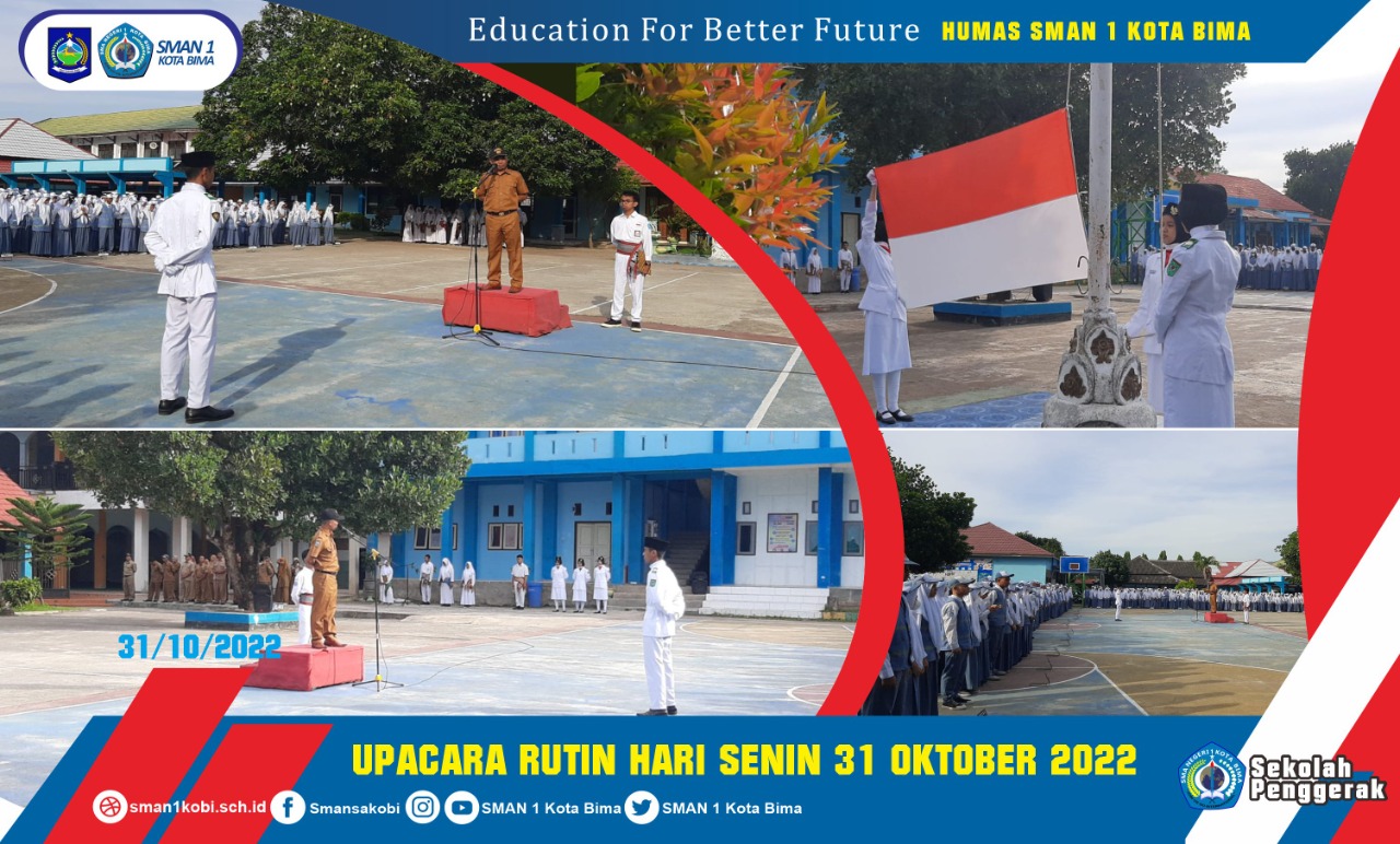 Kota Bima - SMAN 1 Kota Bima melaksanakan rutinitas kegiatan Upacara Bendera Hari Senin yang dihadiri semua civitas bertempat di lapangan sekolah. "Hari ini kita tetap bisa melaksanakan rutinitas kegi