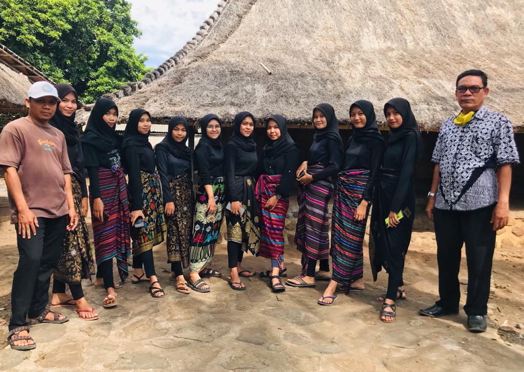 Siswa dan siswi dari SMKN 1 Jerowaru melakukan permainan tradisional congklak di Bale Beleq Jerowaru.