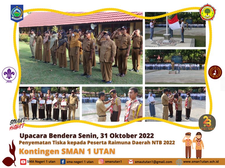 Upacara Bendera Senin 31 Oktober 2022 dirangkaikan dengan Penyematan TISKA kepada Anggota Pramuka SMAN 1 Utan yang telah mengikuti Raimuna Daerah NTB Tahun 2022 yang dilaksanakan pada tanggal 24 s/d 3