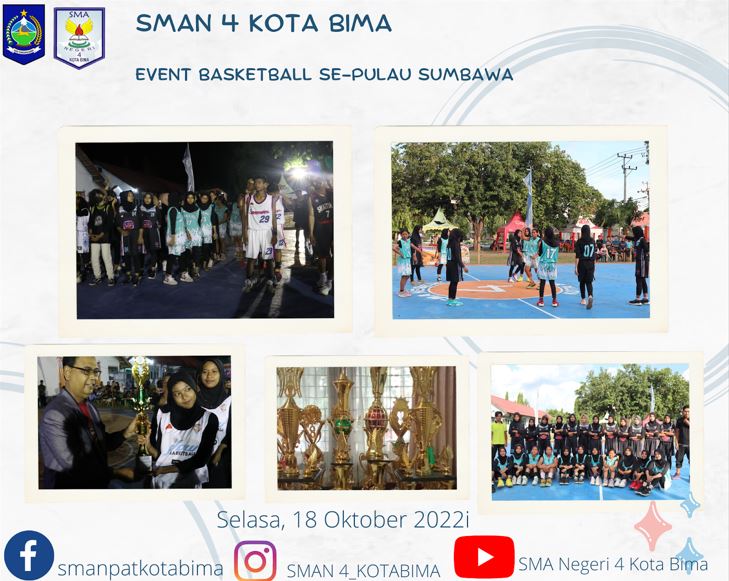 Event besar dalam rangka HUT ke 31 SMAN 4 Kota Bima " Turnamen Basket Ball Gubernur Cup antar pelajar SMA/SMK/MA Se-Pula Sumbawa tadi malam Selasa 18 Oktober 2022 pukul 19.30 merupakan acara puncak