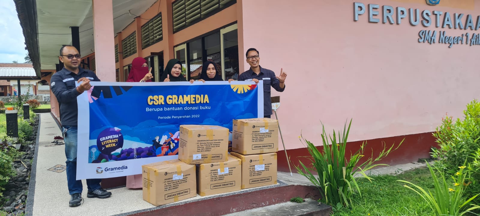 SMAN 1 Aikmel/11 Oktober 2022 – PT Gramedia Mataram menyerahkan ribuan paket buku literasi di SMAN 1 Aikmel. Kegiatan penyerahan bantuan buku literasi di laksanakan di ruang perpustakaan SMAN 1 Aikm