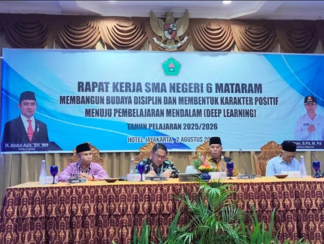 SMA Negeri 6 Mataram gelar Rapat Kerja 2025/2026, evaluasi program tahun lalu, susun strategi baru, bangun budaya disiplin, bentuk karakter positif, wujudkan pembelajaran mendalam.