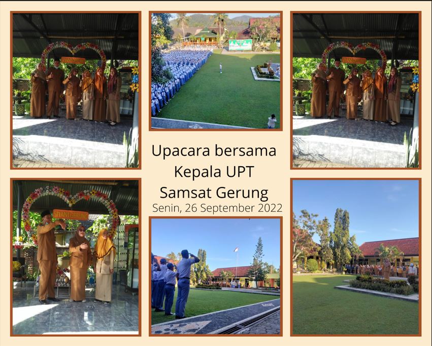 Pada hari Senin, 26 September 2022 Kepala UPT Samsat Gerung menjadi pembina upacara di SMAN 1 Gerung. Upacara bendera hari ini menjadi istimewa karena yang menjadi pembina upacara adalah Kepala UPT Sa