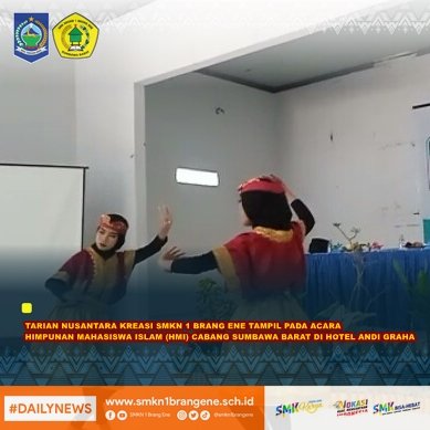 Siswi SMK Negeri 1 Brang Ene dipercaya untuk menampilkan tarian kreasi dalam acara yang diadakan oleh Himpunan Mahasiswa Islam (HMI) Cabang Sumbawa Barat. Acara Intermediate Training LAtihan Kader II
