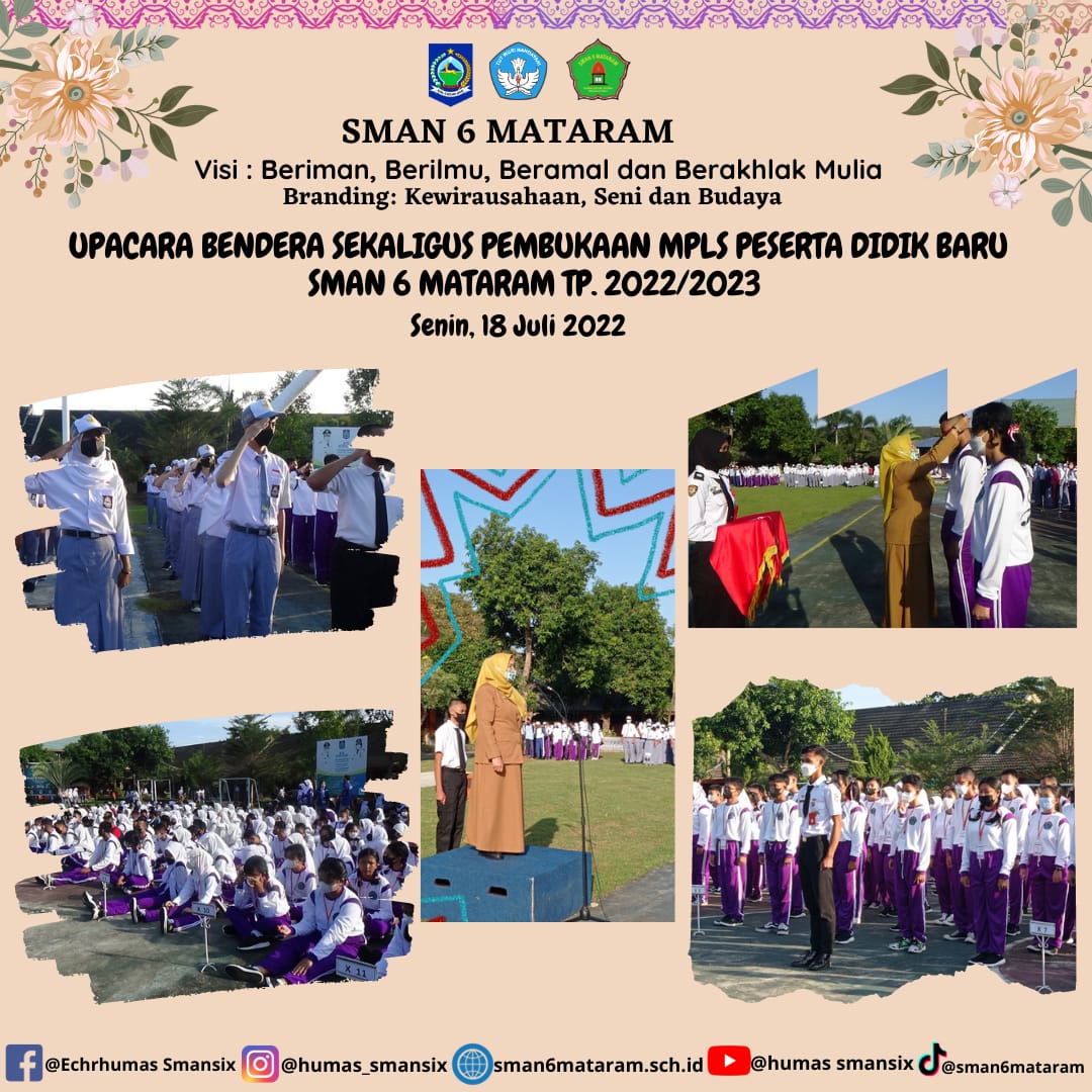 Masa Pengenalan Lingkungan Sekolah (MPLS) di SMAN 6 Mataram dimulai hari ini Senin, 18 Juli 2022. Kegiatan dimulai dengan pelaksanaan upacara bendera bersama siswa siswi kelas XI dan XII serta dirangk