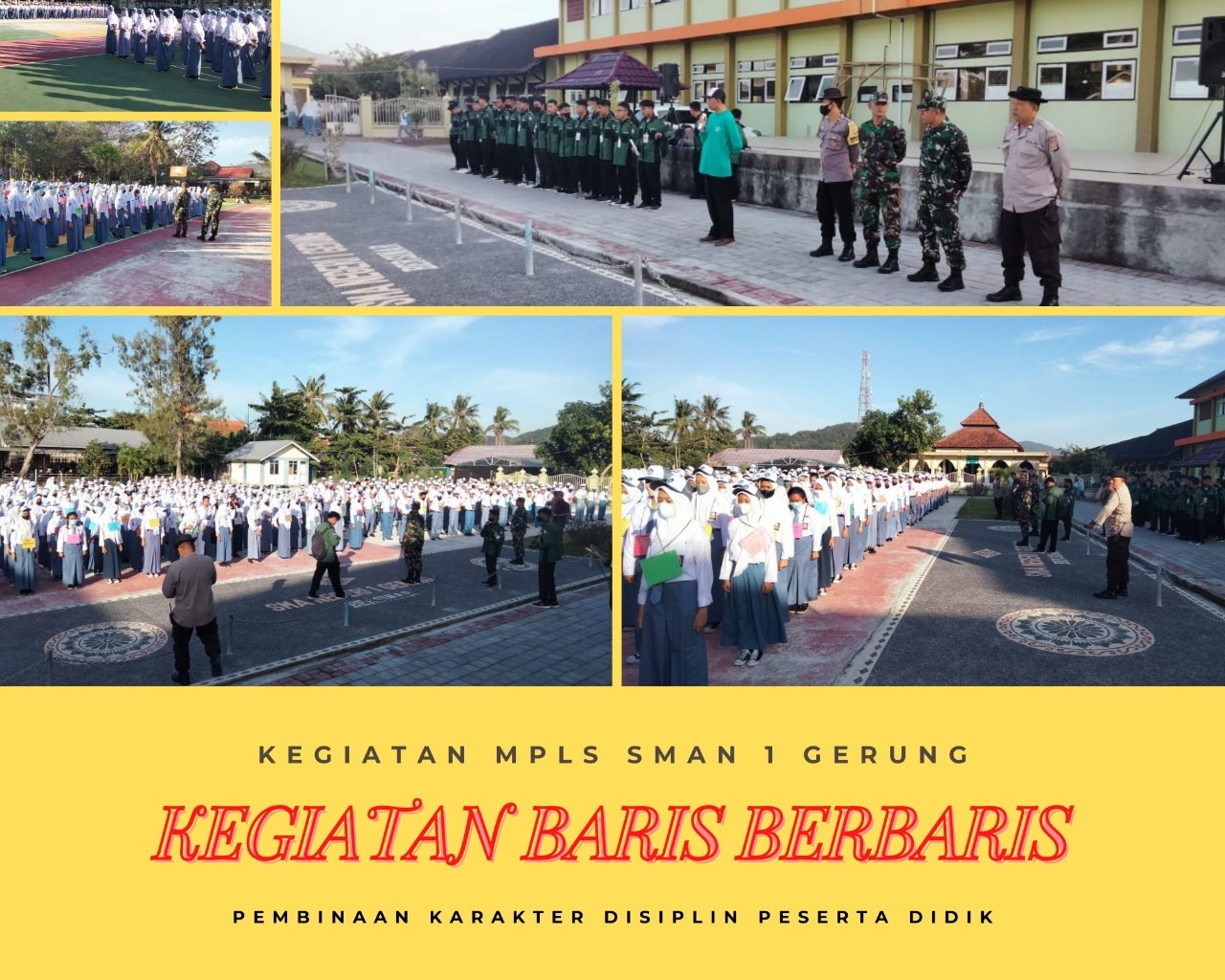 Pembinaan karakter disiplin Melalui kegiatan Baris Berbaris oleh TNI Polri Selasa, 19 Juli 2022 07:43 Wita Seperti biasa pagi ini di SMAN 1 Gerung terasa begitu sejuk. Hawa yang 'semriwing' tidak