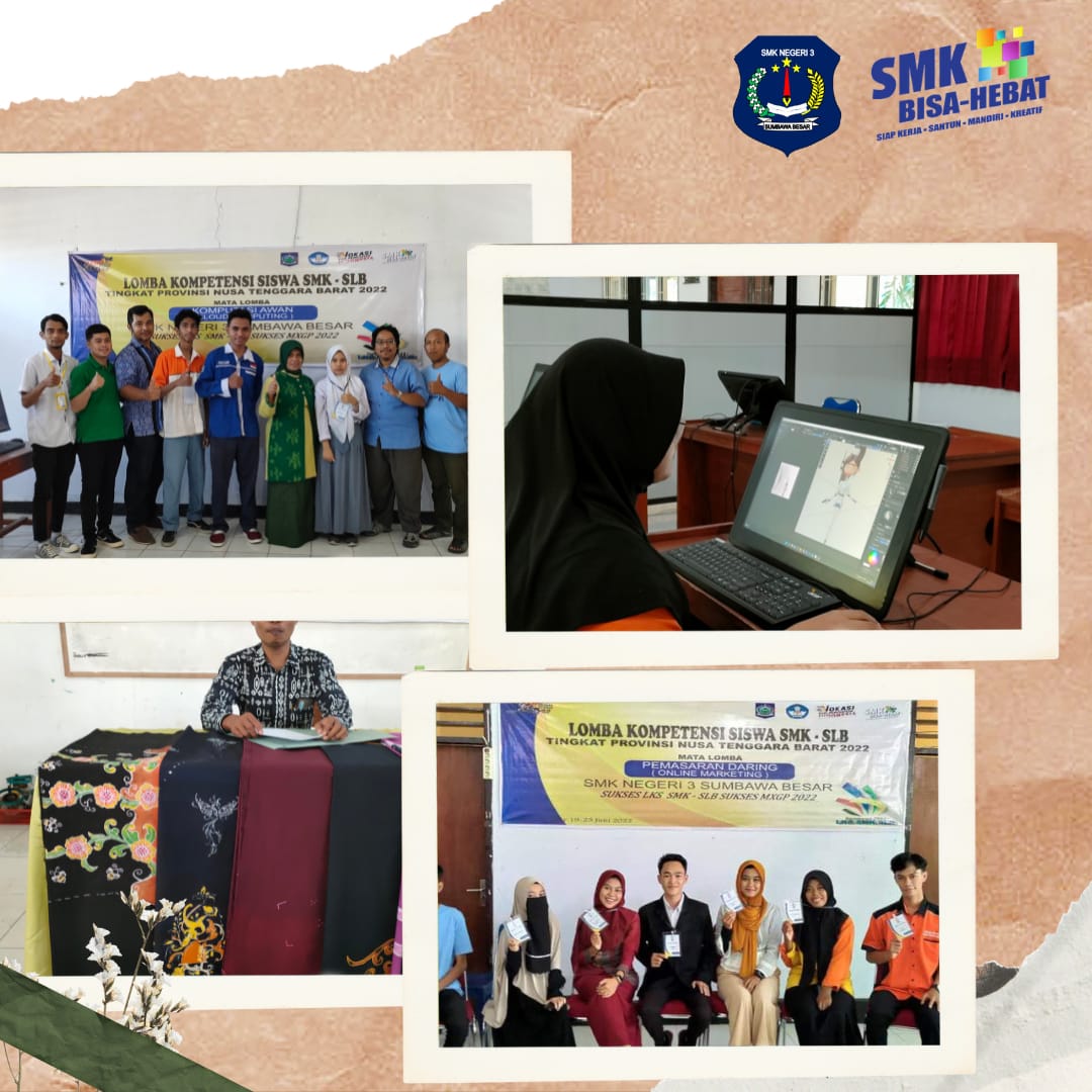 Kegiatan Pelaksanan Lomba Kompetensi Siswa ( LKS) SMK- SLB tingkat provinsi NTB Tahun 2022 yang dilaksnakan di kabupaten Sumbawa. SMK Negeri 3 Sumbawa Besar merupakan salah satu sekolah pengampuh b
